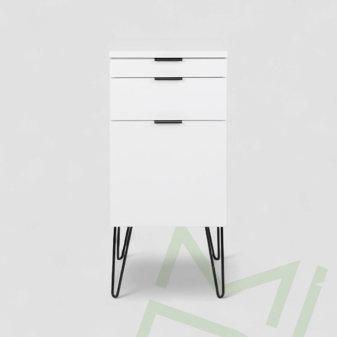 The Vulor Salon Styling Station is a sleek, modern solution designed for professional stylists who value both functionality and aesthetics. Finished in a smooth matte black, this station brings a sophisticated, contemporary feel to any salon or studio setting. It features a built-in side-compartment equipped with heat-resistant holders, ideal for organizing hot tools such as blow dryers, flat irons, and curling wands. This integrated design helps keep essential equipment within reach while maintaining a tidy, clutter-free workspace. In addition to the appliance compartment, the station includes two standard drawers for storing smaller tools and accessories, along with a larger bottom cabinet that offers generous space for bulkier items. The minimalist black hardware blends seamlessly with the overall design, enhancing its clean, professional look. Crafted from durable materials, the station is built to withstand the demands of a busy salon while remaining easy to clean and maintain. Perfectly combining style and practicality, this Vulor styling station is an excellent choice for any modern beauty space.